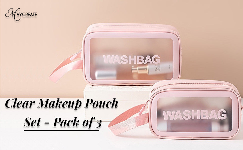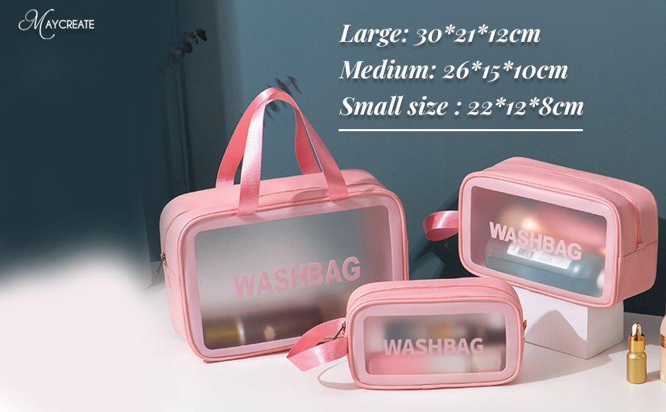 Travel Makeup Pouch Set Toiletry Bag Cosmetic Organizer Bag for Women and Girls Toiletry Storage Kit Set of 3 (WASHBAG)